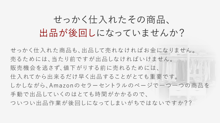 ラクラク操作で仕入れた商品を一括出品でき、出品作業が劇的に早く&楽に
